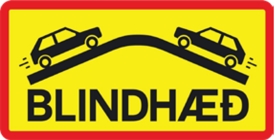 There are many blind hills on our roads, some of them without any markings at all. Many of them, however, are marked with the warning sign “OTHER DANGER” above the word “BLINDHÆÐ”.